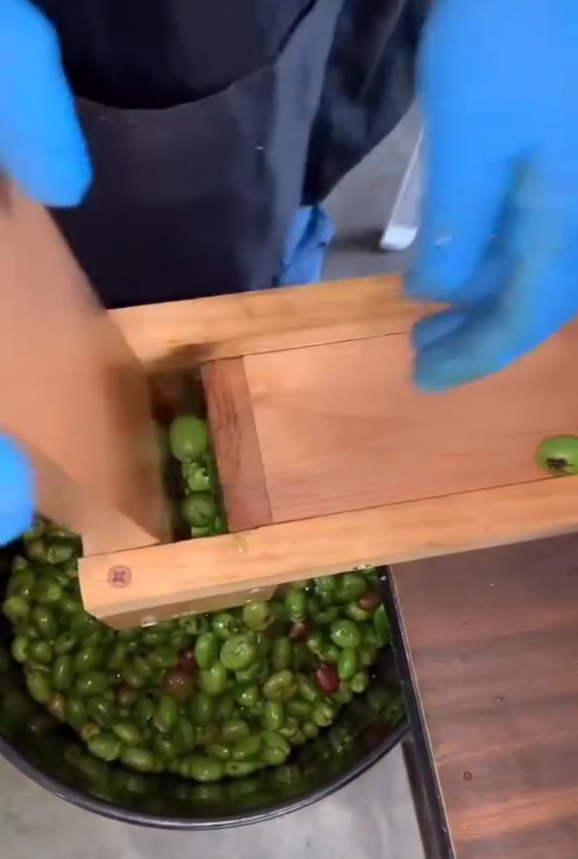 أداة خشبية عملية لتكسير الزيتون بسرعة وسهولة قبل التخليل. تساعد في فتح حبات الزيتون بالتساوي دون إتلافها، مما يجعلها مثالية للاستخدام المنزلي أو في معاصر الزيتون الصغيرة.