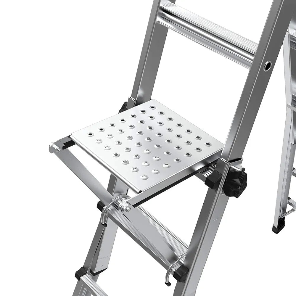 استمتع بالراحة والأمان أثناء أعمالك على السلم مع منصة عمل مصنوعة من الألمنيوم المتين، تتحمل حتى 170 كغ، سهلة الطي والتخزين